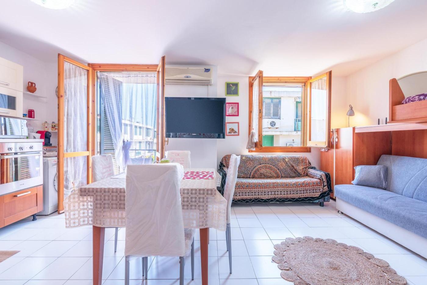 Questo appartamento con aria condizionata comprende 1 camera da letto, un soggiorno, una cucina con utensili, forno e macchina da caffè, e 1 bagno con doccia edi cortesia. Presso questo appartamento troverete asciugamani e lenzuola in dotazione.