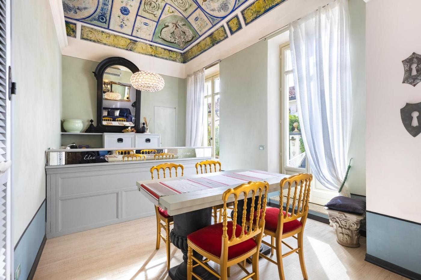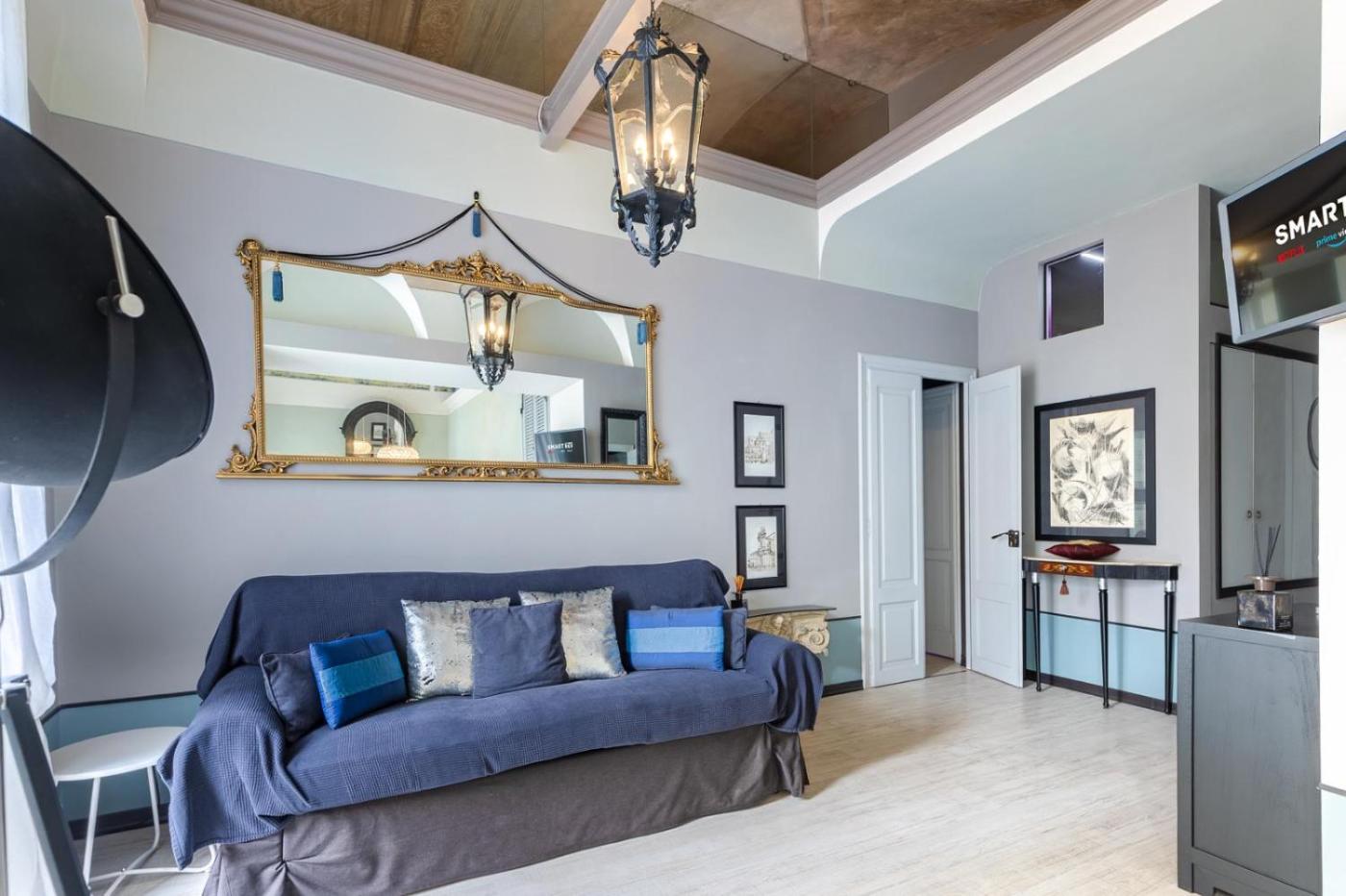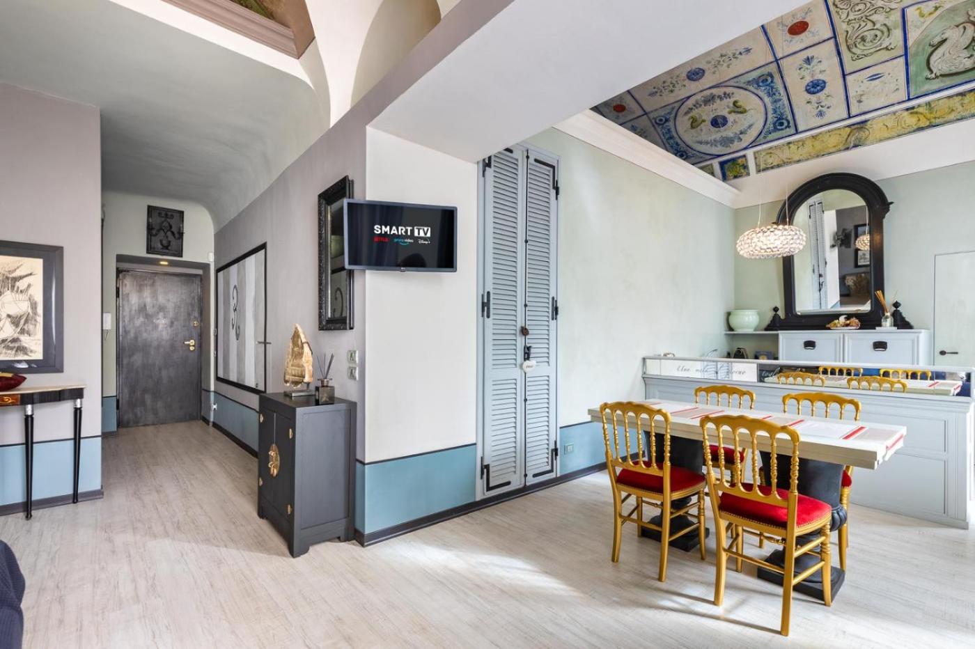 Appartamento con 2 Camere da Letto. This classic apartment comes with ornamented ceilings and walls. It includes a balcony with city views, a flat-screen TV, and a private bathroom with a hairdryer.