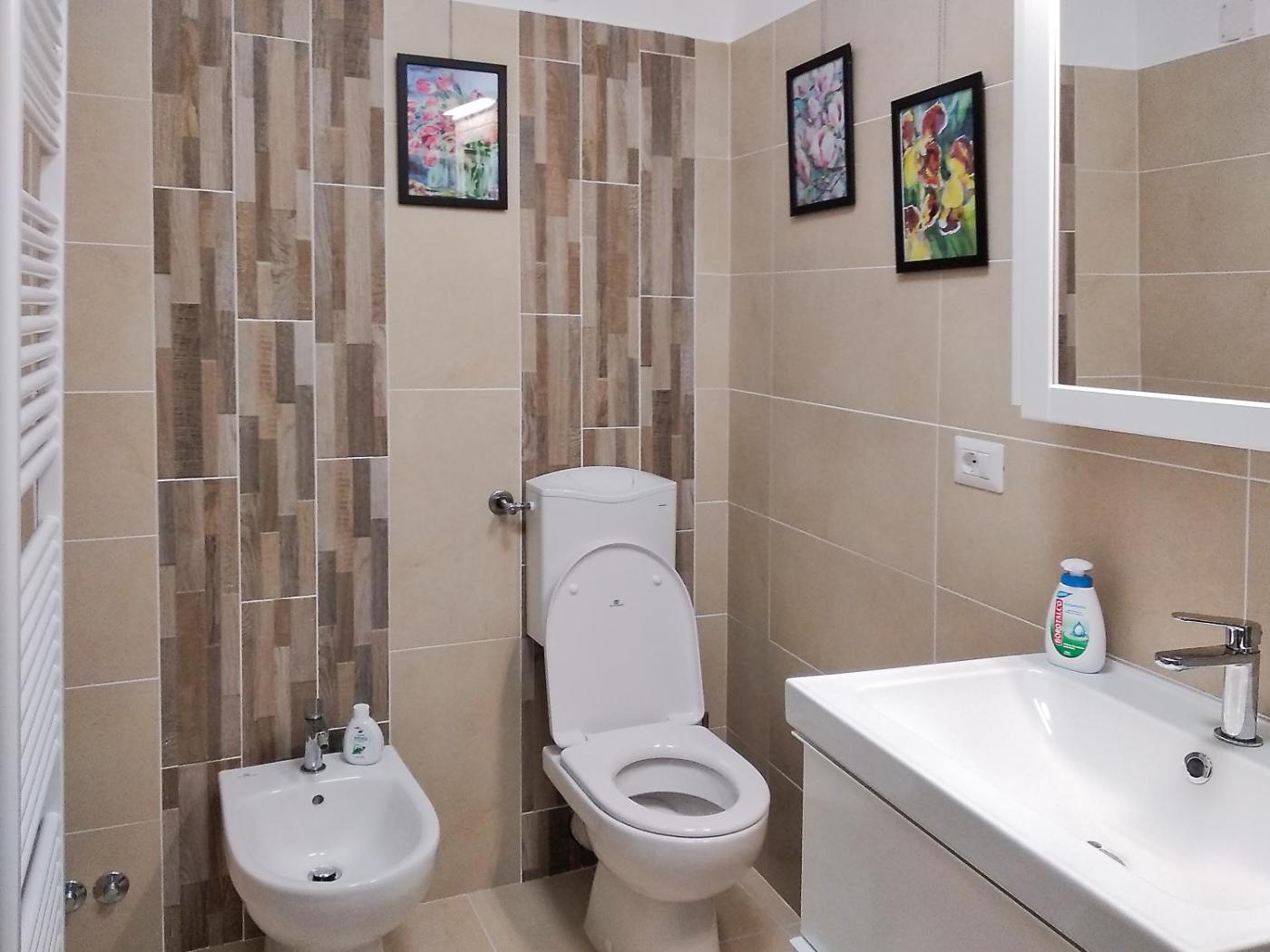 Questo appartamento comprende 1 camera da letto, un soggiorno, una cucina con utensili, frigorifero e bollitore elettrico, e 1 bagno con bidet e doccia. Presso questo appartamento troverete asciugamani e lenzuola in dotazione.
