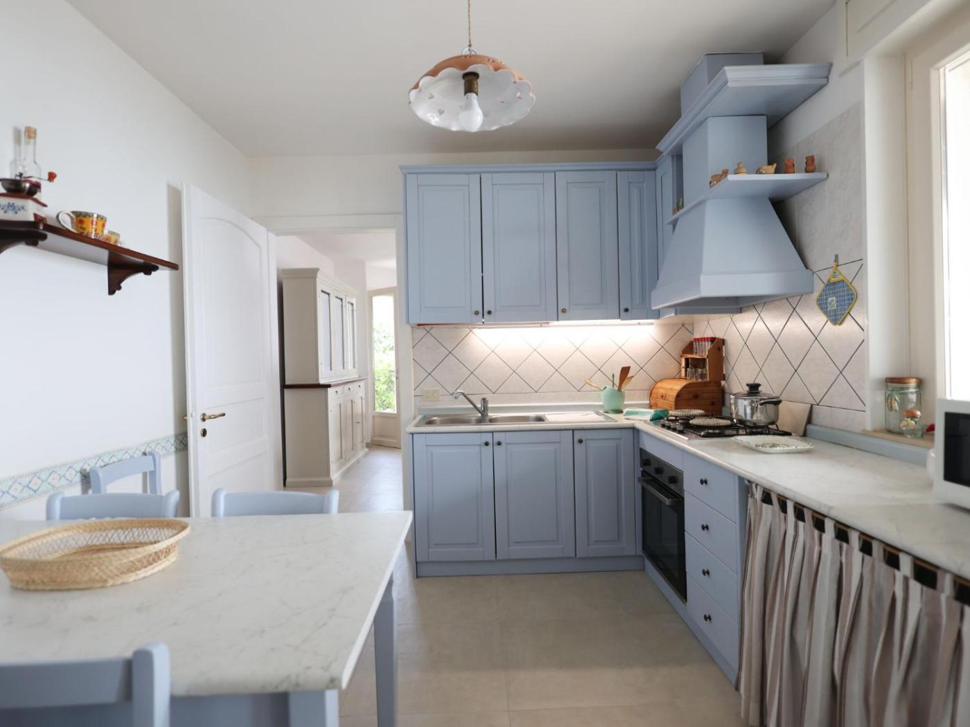 Appartamento. This spacious apartment features 2 bedrooms, kitchen, a terrace and 1 bathroom with a shower. The fully equipped kitchen has a refrigerator, kitchenware, an oven and a microwave. The air-conditioned apartment features a TV, a dining area, a barbecue, heating as well as sea views. The unit has 3 beds.