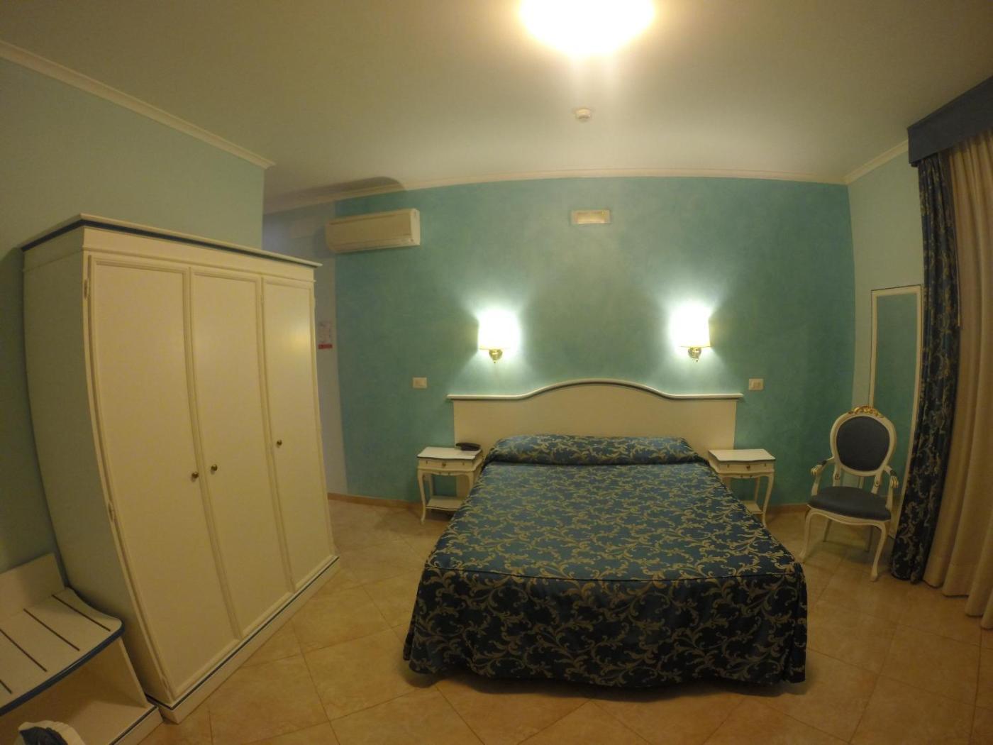 Camera Matrimoniale. Camera matrimoniale dotata di aria condizionata, pareti insonorizzate, balcone con vista sulla città e bagno privato con doccia. L’alloggio dispone di 1 letto. ;