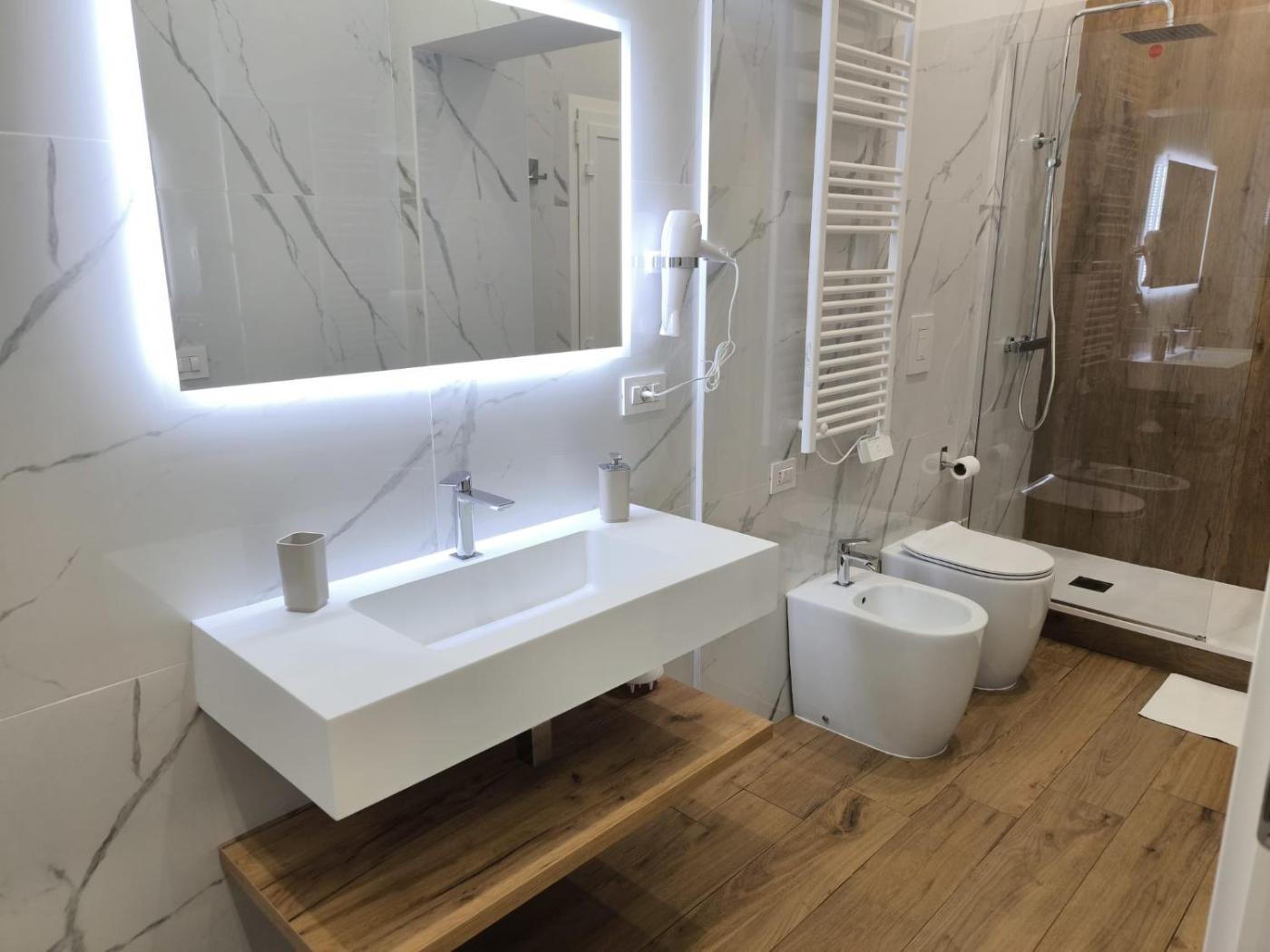 Monolocale Deluxe. Featuring free toiletries, this studio includes a private bathroom with a shower, a bidet and a hairdryer. Guests can make meals in the kitchenette that has a stovetop, a refrigerator, kitchenware and a microwave. The air-conditioned studio features a flat-screen TV with streaming services, a private entrance, soundproof walls, a coffee machine as well as city views. The unit has 2 beds. ;