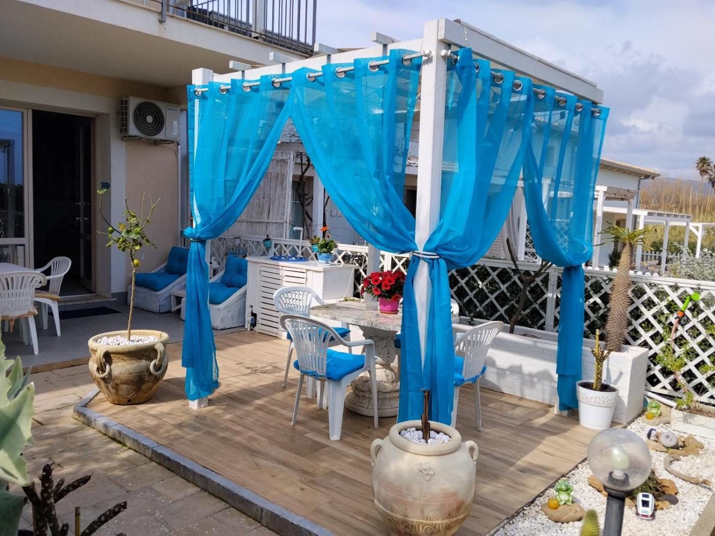 Questa casa vacanze con aria condizionata comprende 1 camera da letto, un soggiorno, una cucina con utensili, frigorifero e bollitore elettrico, e 1 bagno con bidet e doccia. Presso questa casa vacanze troverete asciugamani e lenzuola in dotazione.