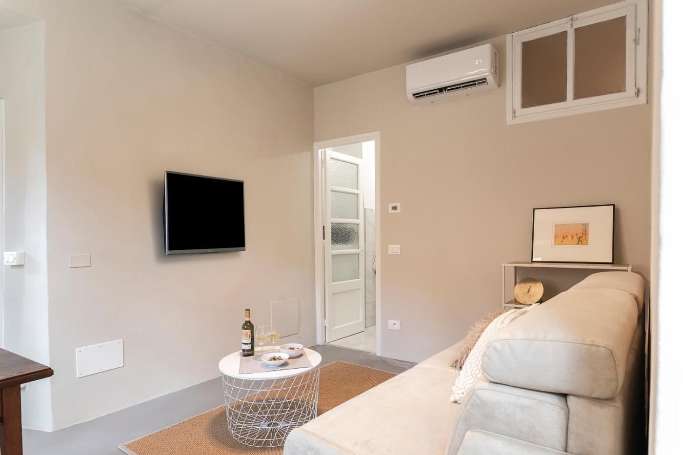 Questa casa vacanze con aria condizionata comprende 2 camere da letto, un soggiorno, una cucina con utensili, frigorifero e macchina da caffè, e 2 bagni con bidet e doccia. Presso questa casa vacanze troverete asciugamani e lenzuola in dotazione.