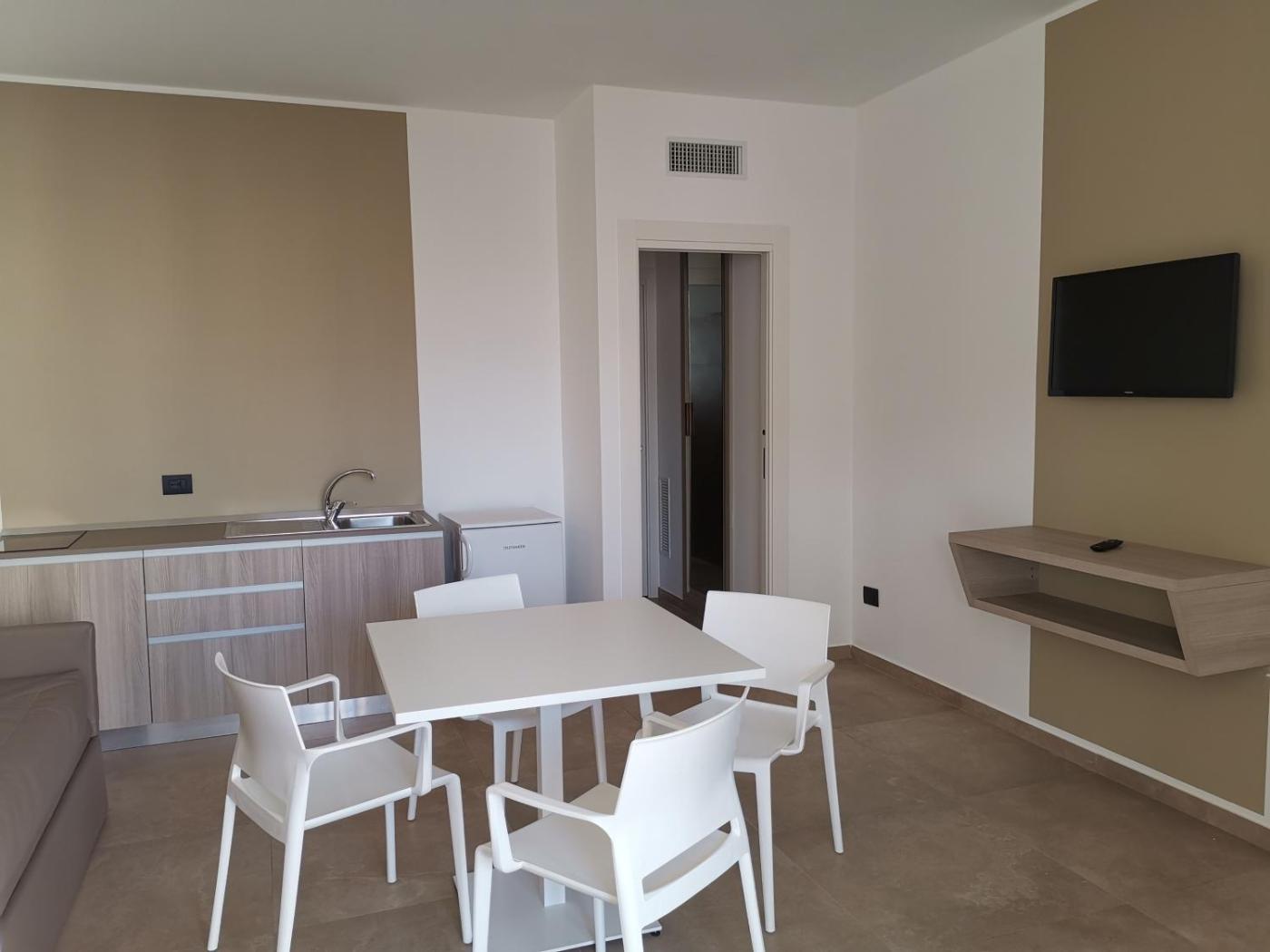 Camera Deluxe. Avrete a disposizione una cucina ben attrezzata con fornelli, frigorifero e utensili da cucina. La spaziosa camera matrimoniale è dotata di area salotto con TV a schermo piatto, scrivania, terrazza e bagno privato. Presenta 2 letti. ;