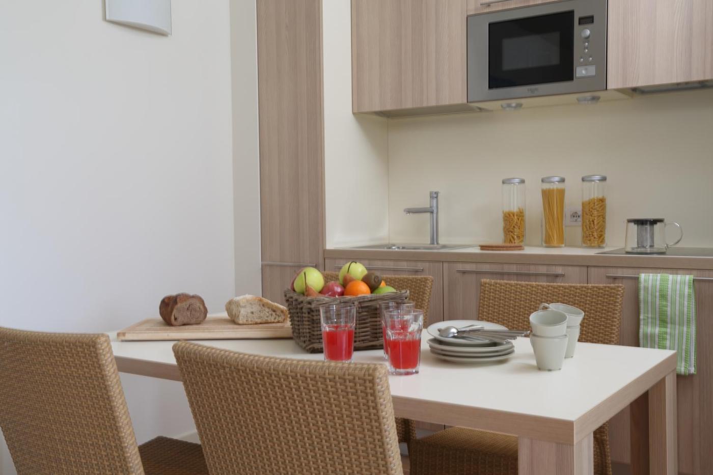 Gli appartamenti sono climatizzati e presentano pavimenti in piastrelle, unarea salotto con TV satellitare, un angolo cottura completo di utensili e un bagno.