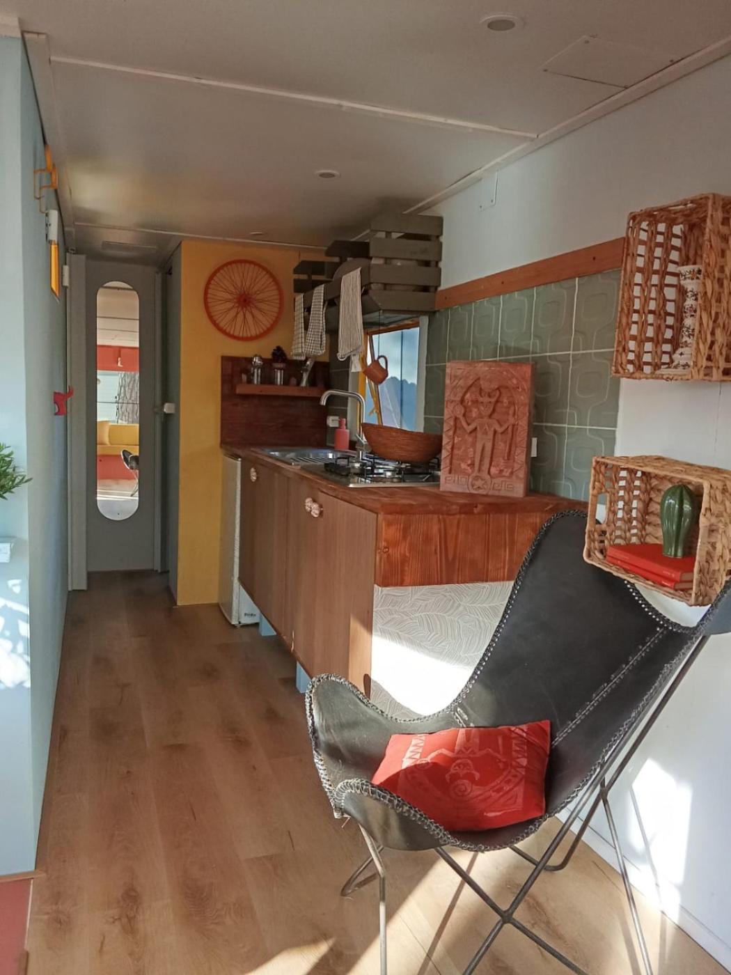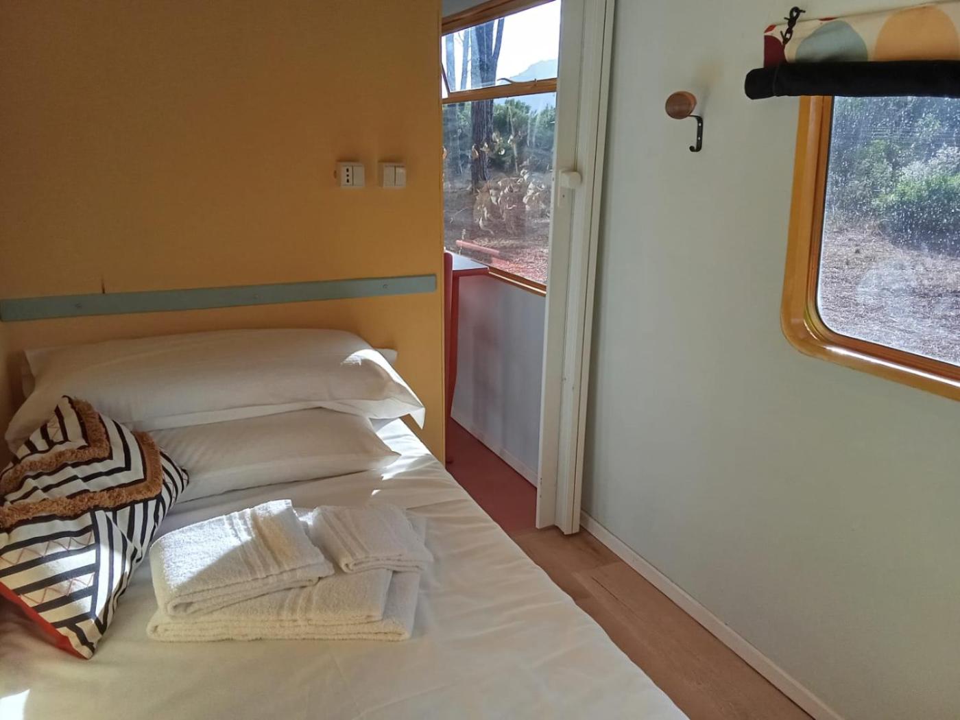 Roulotte. This mobile home comes with 1 living room, 2 separate bedrooms and 1 bathroom with a shower. The mobile home features a seating area, a wardrobe, parquet floors as well as a terrace with sea views. The unit has 2 beds.