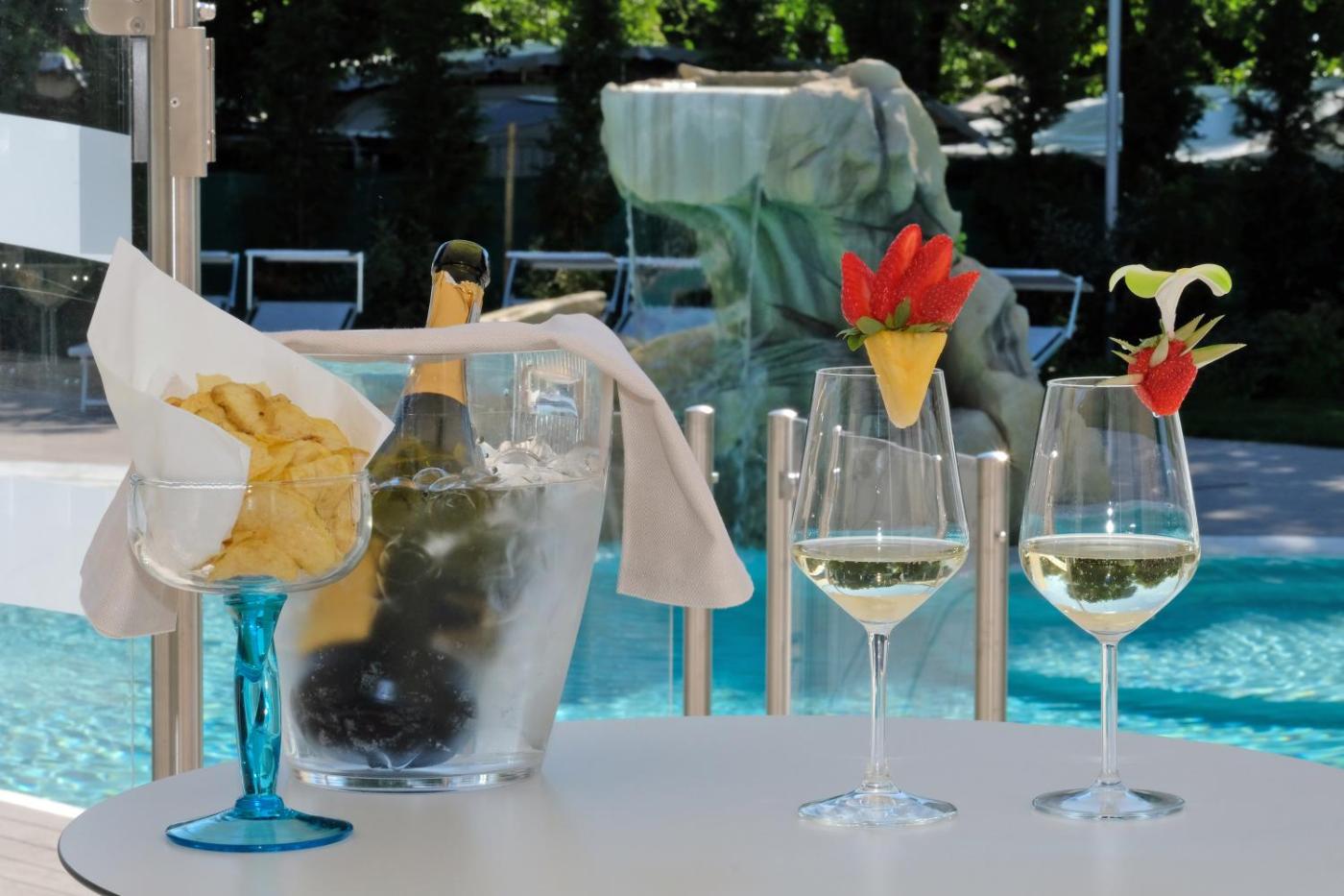 Suite Deluxe con Vasca Idromassaggio. This suites special feature is the hot tub. This suite consists of 1 living room, 1 separate bedroom and 1 bathroom with a shower and free toiletries. The fully equipped kitchenette features a stovetop, a refrigerator, a dishwasher and a microwave. The air-conditioned suite provides a flat-screen TV with satellite channels, soundproof walls, a minibar, a tea and coffee maker as well as lake views. The unit offers 2 beds. ;