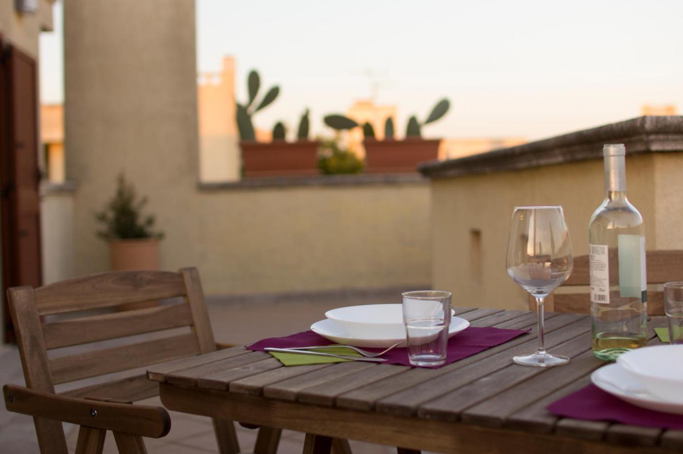 Appartamento Attico. Appartamento climatizzato con camera da letto e bagno con doccia e bidè. A vostra disposizione una cucina con piano cottura, frigorifero, forno e utensili. Potrete usufruire anche di un barbecue. La sistemazione dispone anche di TV a schermo piatto,per la preparazione di tè e caffè e terrazza affacciata sulla cittĂ . Lâalloggio presenta 1 letto.