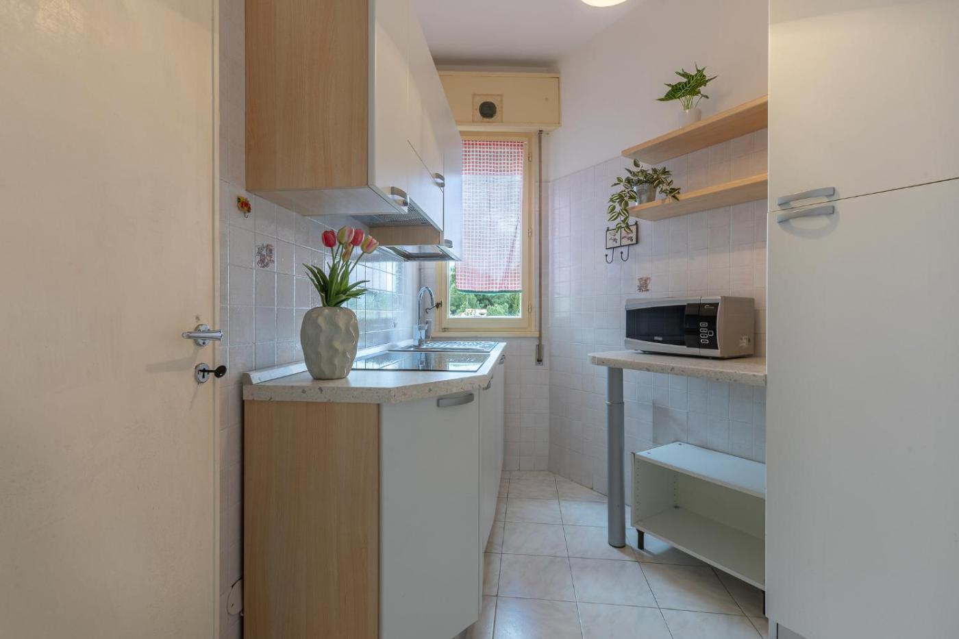 Questo appartamento con aria condizionata comprende 1 camera da letto, un soggiorno, una cucina con utensili, frigorifero e bollitore elettrico, e 1 bagno con bidet e doccia. Presso questo appartamento troverete asciugamani e lenzuola tra i servizi offerti.