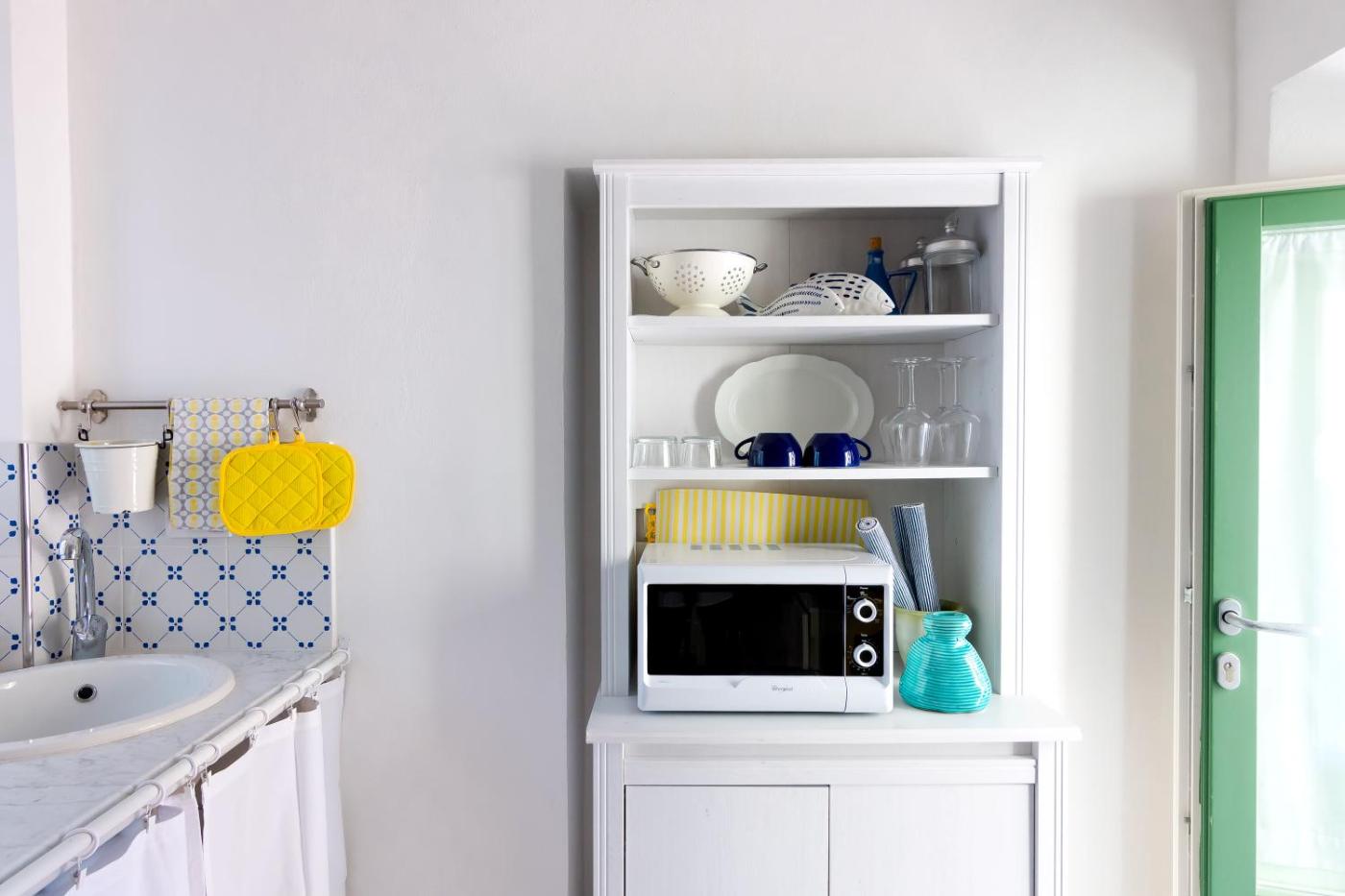 Questo appartamento con aria condizionata presenta 1 camera da letto e 1 bagno con bidet, doccia e asciugacapelli. La cucina prevede frigorifero, lavastoviglie e microonde più macchina da caffè.