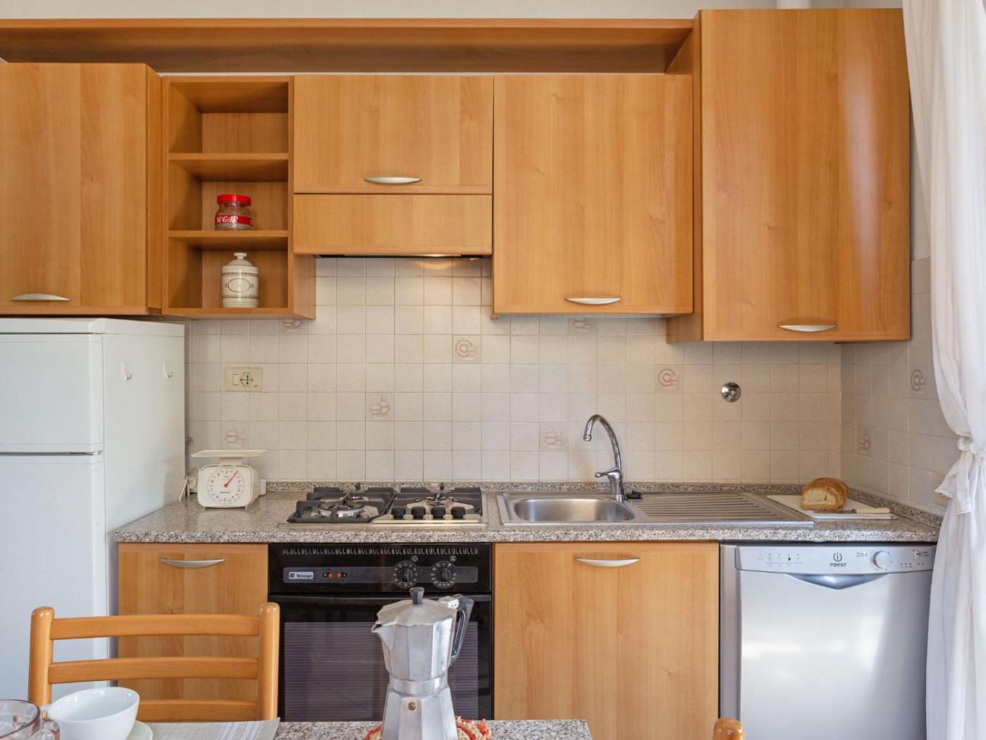Questa casa vacanze ha 2 camere da letto, un angolo cottura con frigorifero e lavastoviglie e 1 bagno con bidet e doccia. Tra i servizi offerti troverete una TV.