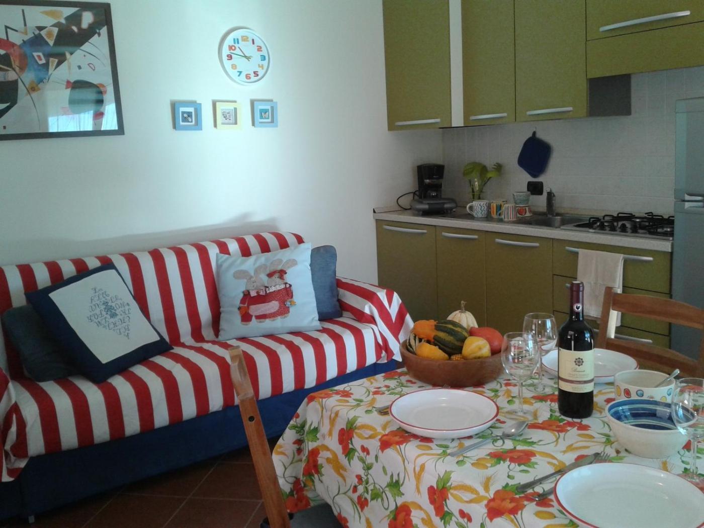 Appartamento con 1 Camera da Letto e Terrazza. Featuring a private entrance, this apartment is comprised of 1 living room, 1 separate bedroom and 1 bathroom with a shower and a bidet. Guests will find a stovetop, a refrigerator, kitchenware and a microwave in the fully equipped kitchenette. The apartment also has a barbecue. This apartment features a washing machine, a tea and coffee maker, a flat-screen TV with satellite channels and a terrace. The unit offers 2 beds.