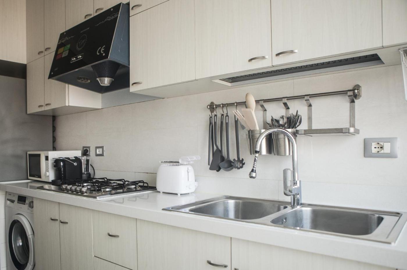 Appartamento Premium con 3 Camere da Letto e Balcone. The spacious apartment has 3 bedrooms and 1 bathroom with a shower and free toiletries. The kitchen is fitted with kitchenware, a microwave and a toaster. The air-conditioned apartment offers a TV with cable channels, a washing machine, a private entrance, a coffee machine as well as garden views. The unit has 3 beds and 1 futon.