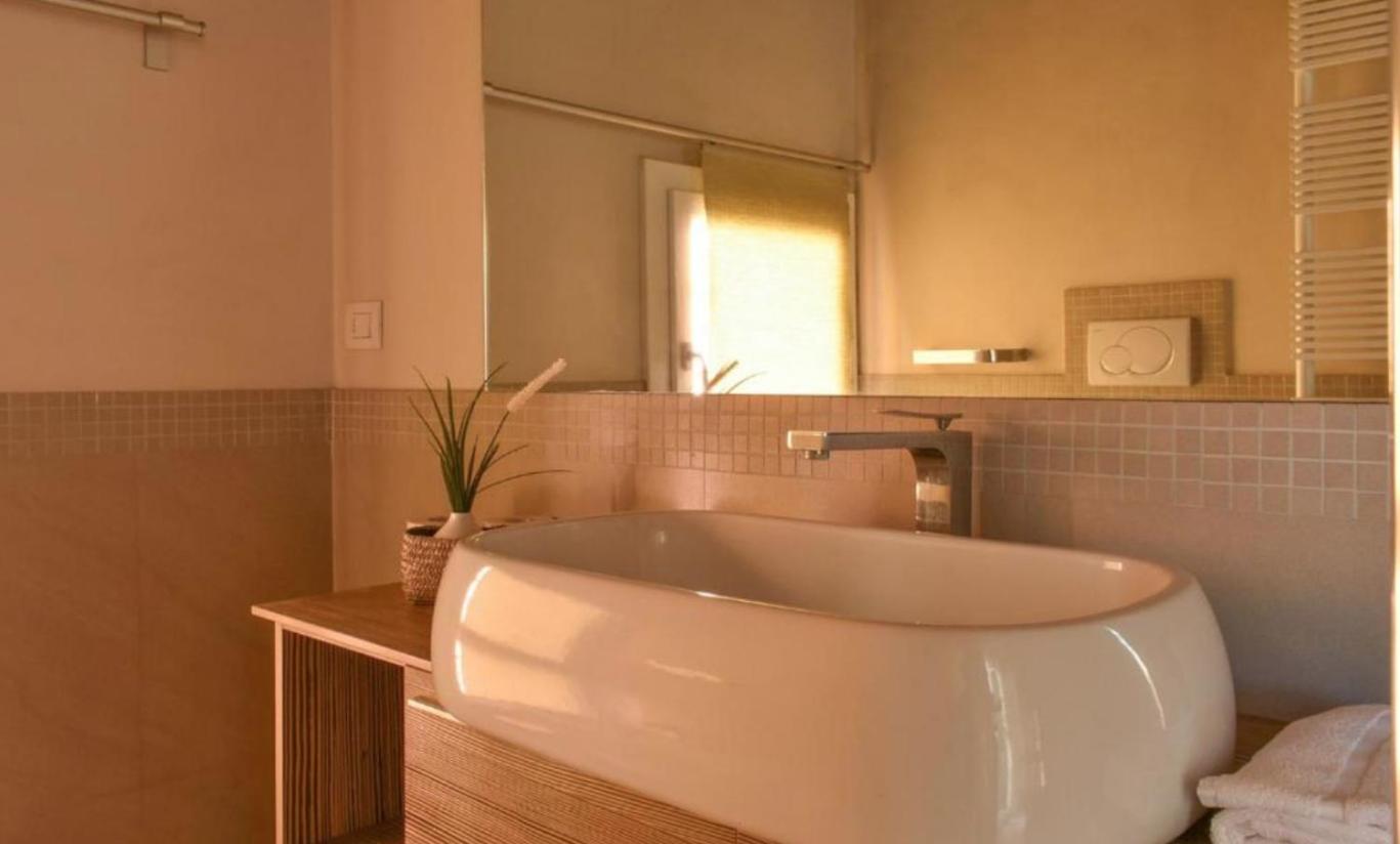 Questo appartamento con aria condizionata comprende 1 camera da letto, un soggiorno, una cucina con utensili, frigorifero e macchina da caffè, e 2 bagni con doccia edi cortesia. Presso questo appartamento troverete asciugamani e lenzuola a disposizione.