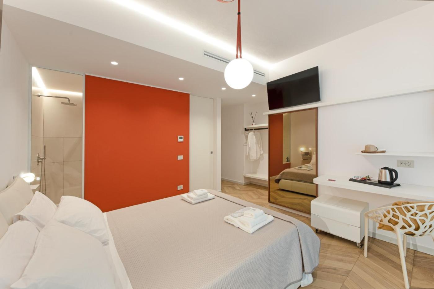 Camera Matrimoniale Deluxe con Balcone. Camera matrimoniale climatizzata dotata di TV a schermo piatto con canali satellitari, bagno privato e balcone con vista sulla cittĂ . Lalloggio dispone di 1 letto. ;