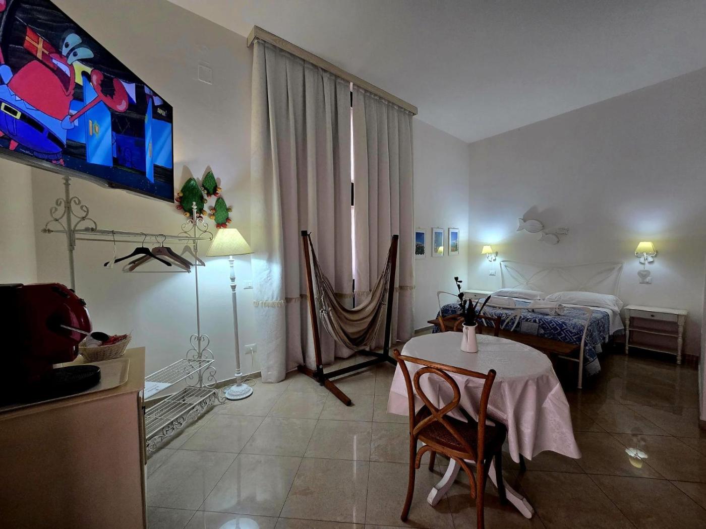 Camera Deluxe. Questa spaziosa camera matrimoniale è dotata di aria condizionata, ingresso indipendente e bagno privato con doccia a filo pavimento e bidet. Dispone di 2 letti.