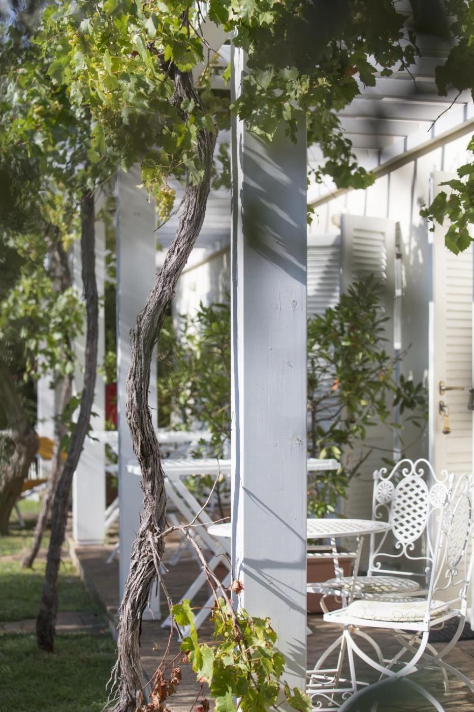 Junior Suite con Accesso al Giardino. Camera dotata di patio privato con tavolo e sedie, e accesso diretto al giardino in comune, arredato con lettini. ;