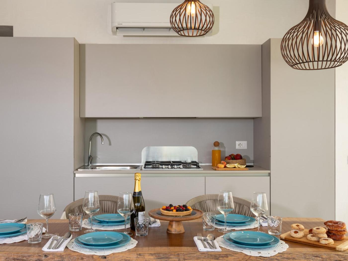 Questa villa con aria condizionata comprende 2 camere da letto, un soggiorno, una cucina con utensili, frigorifero e macchina da caffè, e 2 bagni con bidet e doccia. Presso questa villa troverete asciugamani e lenzuola tra i servizi offerti.