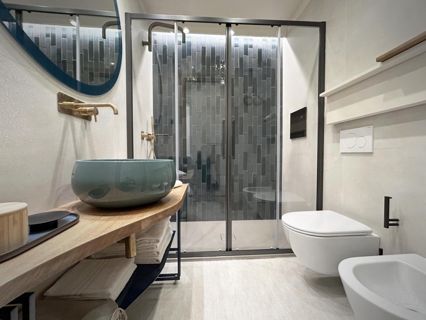 Camera Tripla Superior con Vista Mare. Camera tripla dotata di bagno privato completo di doccia a filo pavimento, bidet, asciugacapelli edi cortesia. La camera tripla è dotata di aria condizionata, TV a schermo piatto con canali via cavo, ingresso privato, pareti insonorizzate, macchina da caffè e vista sul mare. L’alloggio presenta 2 letti.