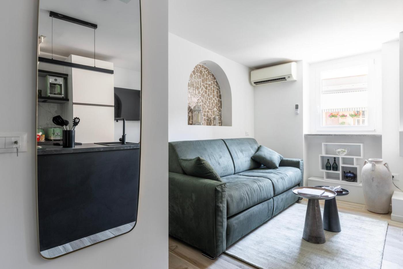 Appartamento con 1 Camera da Letto. This apartment features a fireplace. Boasting a private entrance, this air-conditioned apartment features 1 living room, 1 separate bedroom and 1 bathroom with a shower and a bidet. Guests can make meals in the kitchenette that has a stovetop, a refrigerator, a dishwasher and kitchenware. This apartment has a washing machine, soundproof walls, flat-screen TV, as well as winechampagne for guests. The unit has 2 beds.