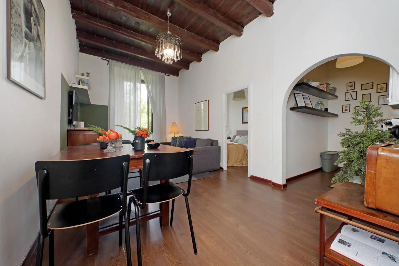 Appartamento con 1 Camera da Letto. This air-conditioned apartment features 1 living room, 1 separate bedroom and 1 bathroom with a shower. In the well-fitted kitchen, guests will find a stovetop, a refrigerator, kitchenware and an oven. The apartment has parquet floors, a seating area with a flat-screen TV with cable channels, a tea and coffee maker, a dining area, as well as a wardrobe. The unit has 2 beds.