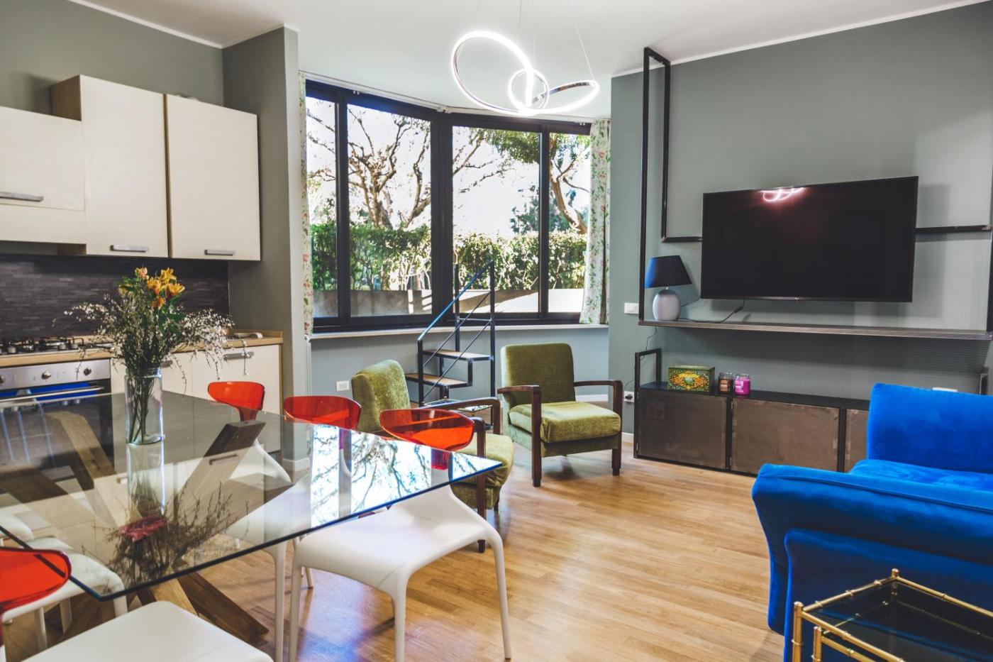 Appartamento con 2 Camere da Letto. Boasting 2 bedrooms, this spacious apartment has 1 bathroom with a bath or a shower, a seating area and terraceyou can relax. Guests can make meals in the kitchen that features a stovetop, a refrigerator, a dishwasher and an oven. The air-conditioned apartment features a flat-screen TV, a washing machine, a tea and coffee maker, a dining area as well as garden views. The unit offers 2 beds.