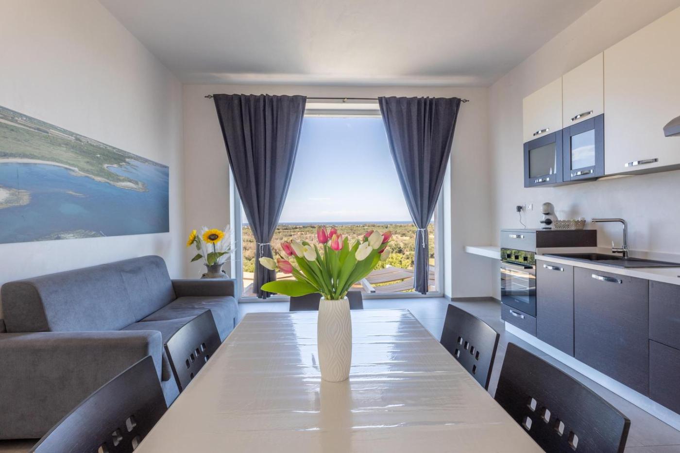 Villa. This villas special features are the private pool and the spa bath. Featuring a private entrance, this air-conditioned villa is comprised of 1 living room, 2 separate bedrooms and 2 bathrooms with a shower and a bidet. Guests will find a stovetop, a refrigerator, a dishwasher and kitchenware in the kitchen. The villa also has a barbecue. Boasting a terrace with sea views, this villa also offers a washing machine and a flat-screen TV with satellite channels. The unit offers 3 beds.