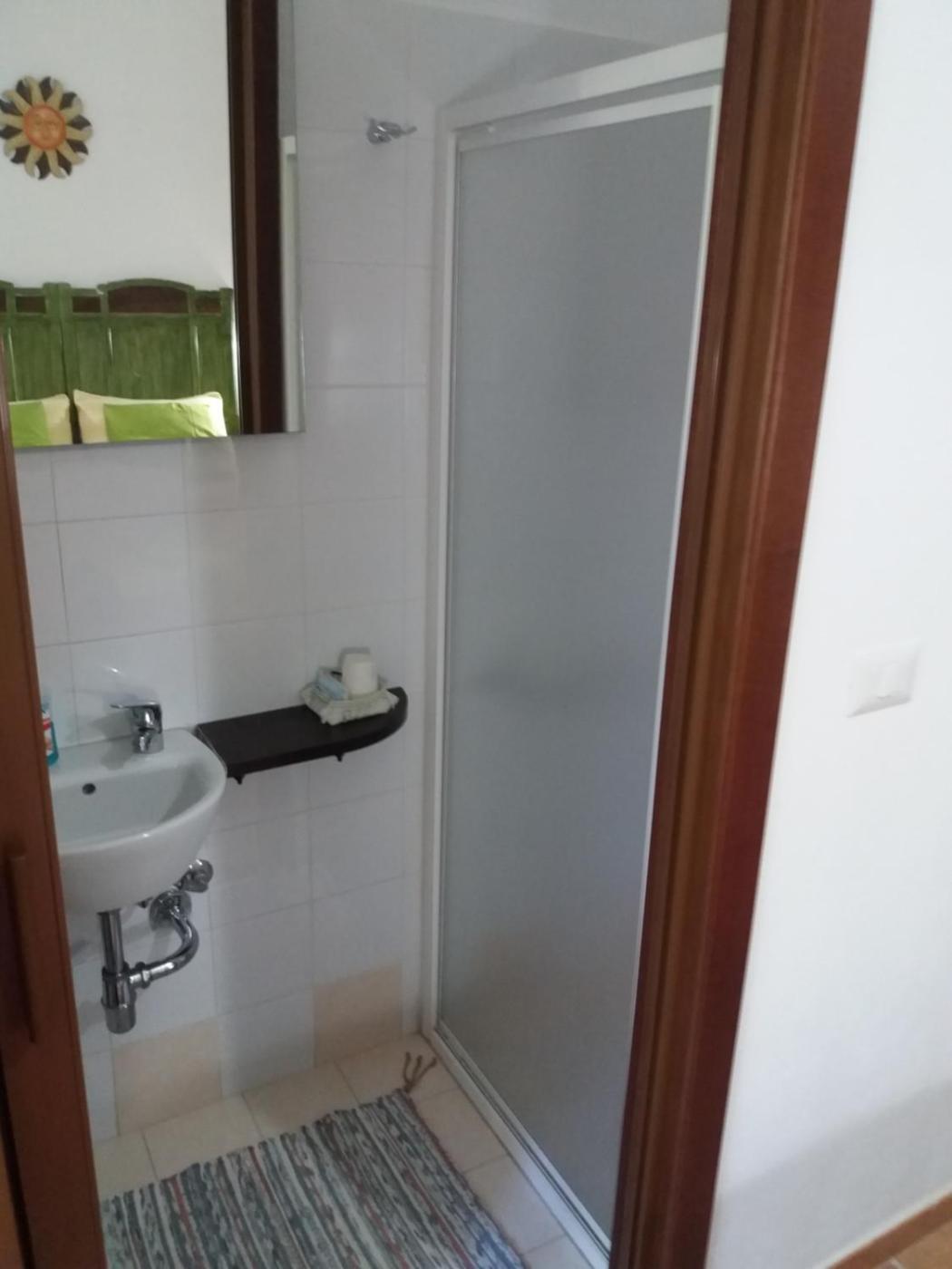In ogni alloggio troverete un bagno privato con doccia,di cortesia e asciugacapelli.