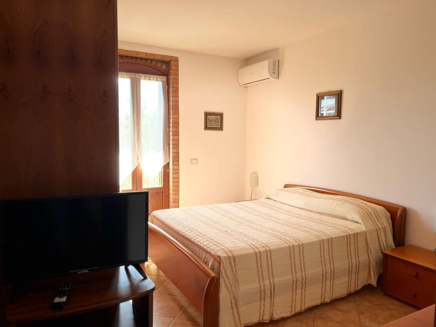 Camera Matrimoniale con Bagno Privato. Camera matrimoniale climatizzata dotata di TV via cavo a schermo piatto, bagno privato e terrazza con vista sul mare. L’alloggio dispone di 1 letto. ;