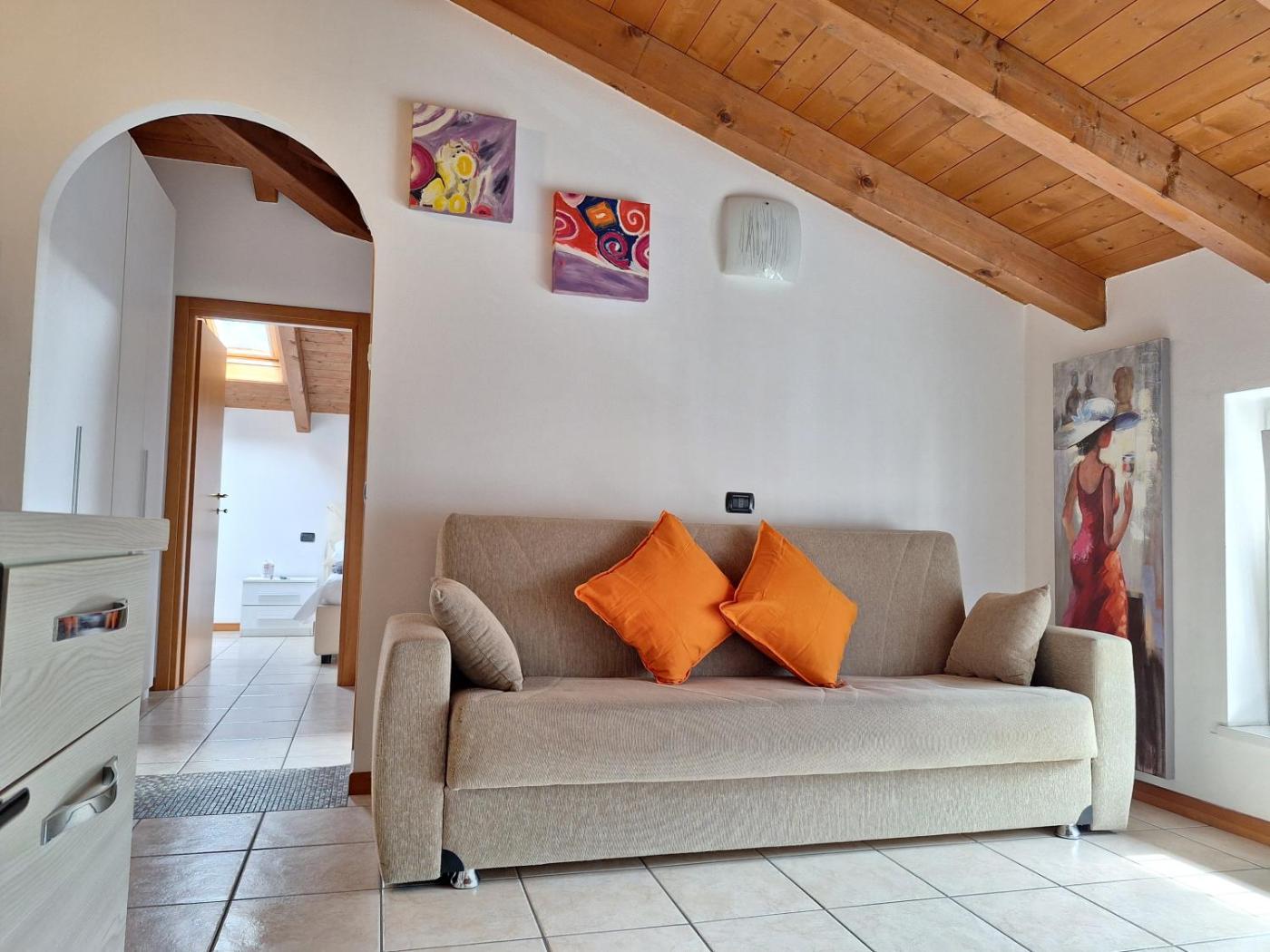 Appartamento con 1 Camera da Letto. This apartment is comprised of 1 living room, 1 separate bedroom and 1 bathroom with a bath and free toiletries. The apartments kitchen, which has an oven, is available for cooking and storing food. The apartment features tiled floors, a seating area with a flat-screen TV, a washing machine, a wardrobe as well as mountain views. The unit offers 3 beds.