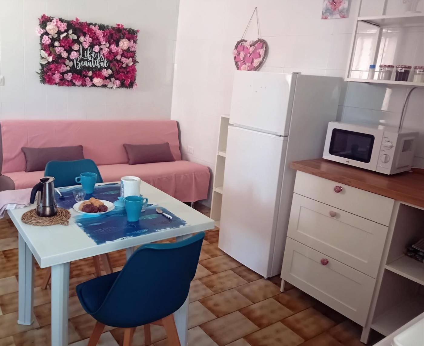 Questo appartamento offre una terrazza, 1 camera da letto, un soggiorno e una cucina con frigorifero e microonde. Presso questo appartamento troverete asciugamani e lenzuola tra i servizi disponibili.
