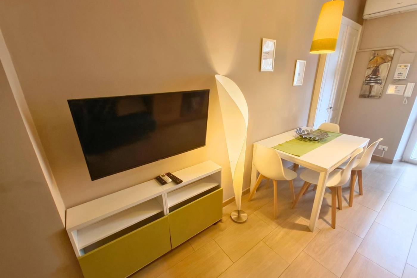 Appartamento con 1 Camera da Letto. This air-conditioned apartment features 1 living room, 1 separate bedroom and 1 bathroom with a shower. Guests can make meals in the kitchen that has a stovetop, a refrigerator, kitchenware and an oven. Boasting a balcony with ancourtyard view, this apartment also features a washing machine and a flat-screen TV with cable channels. The unit has 2 beds.